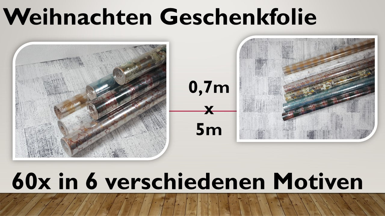 Weihnachten Geschenkfolie Mix (60 Stück)