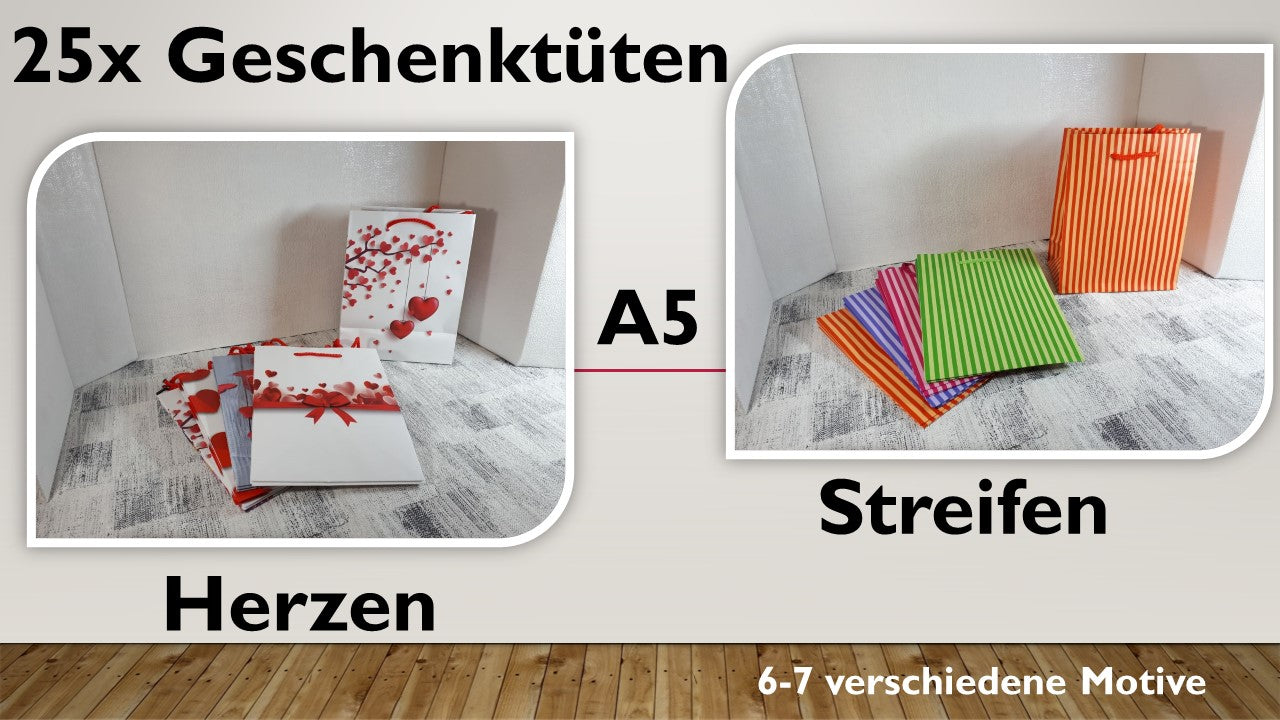 Geschenktüten A5; Herzen + Streifen (25 Stück)